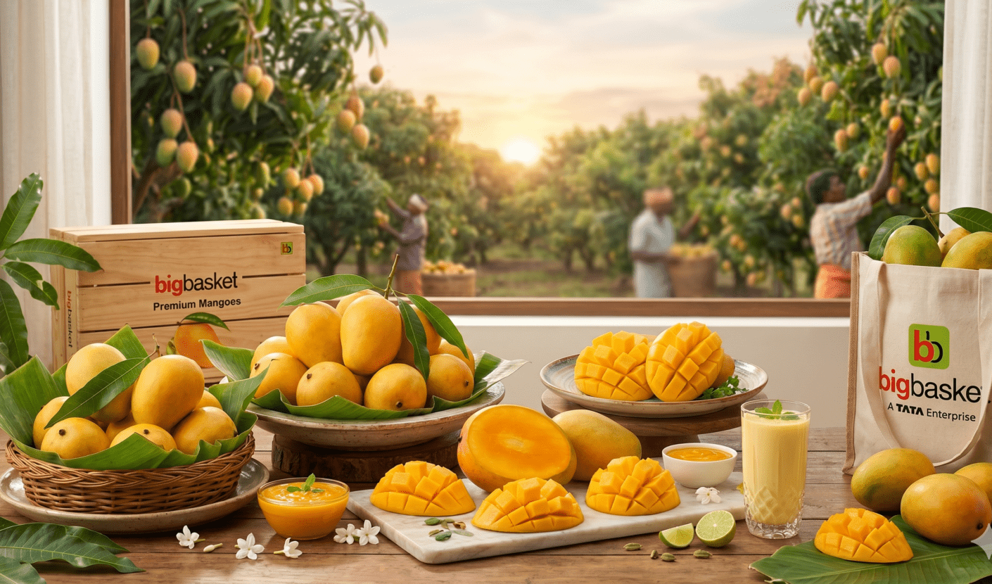 Through thoughtful presentation, BigBasket (A Tata Enterprise) mango visuals can communicate reliability, quality, and seasonal appeal. A carefully styled fruit visual creates strong impact and encourages positive perception of the product.